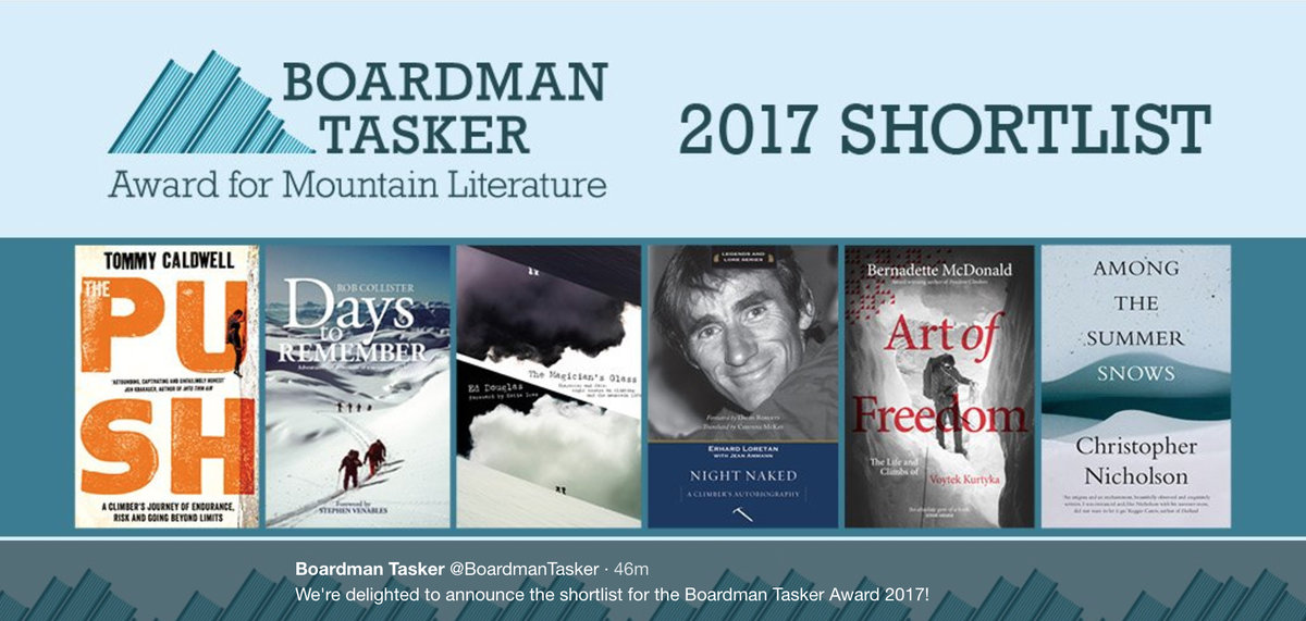 The shortlist for the 2017 Boardman Tasker Award for Mountain Literature has been announced.