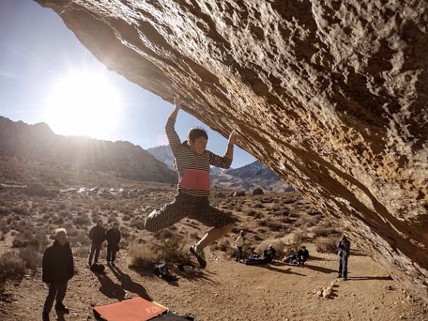 Ashima Shiraishi arrived in Bishop before Xmas with a shopping list of hard blocs that she’s quickly been working her way through. Soon after arriving she did Maze of Death (V12/Font 8a+) a Dave Graham bloc. Just after Xmas, Shiraishi did both Babeurre (V12/Font 8a+) and Blood Meridian (V13/Font 8b) in the same day! Blood Meridian is the first section of a project which Daniel Woods has previously tried. Although Woods did the ‘hard sections’, up to V13/Font 8b, the final section which is said to be V10/11 or Font 7c+ in its own right proved too much for him on that occasion. It remains to be seen whether the diminutive Ashima Shiraishi will try this link-up which will clearly be significantly harder and a truly outstanding an achievement.