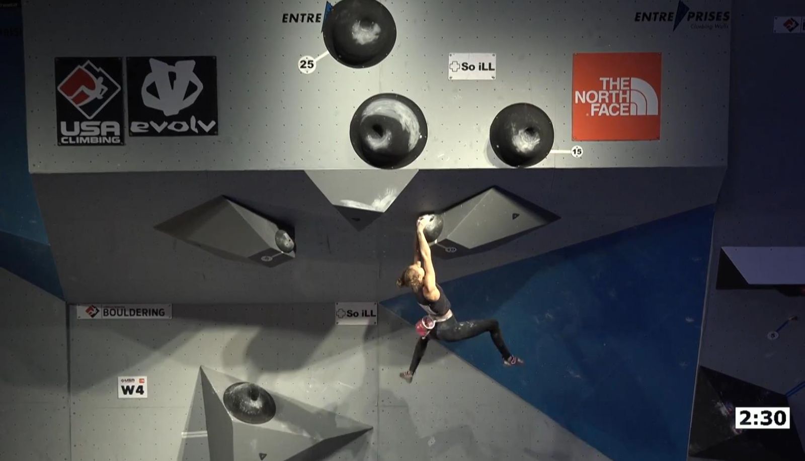 Mago Hayes putting in a very determined effort on W4 – and although she didn’t flash/top-out she did the best of all the competitors on the long powerful bloc