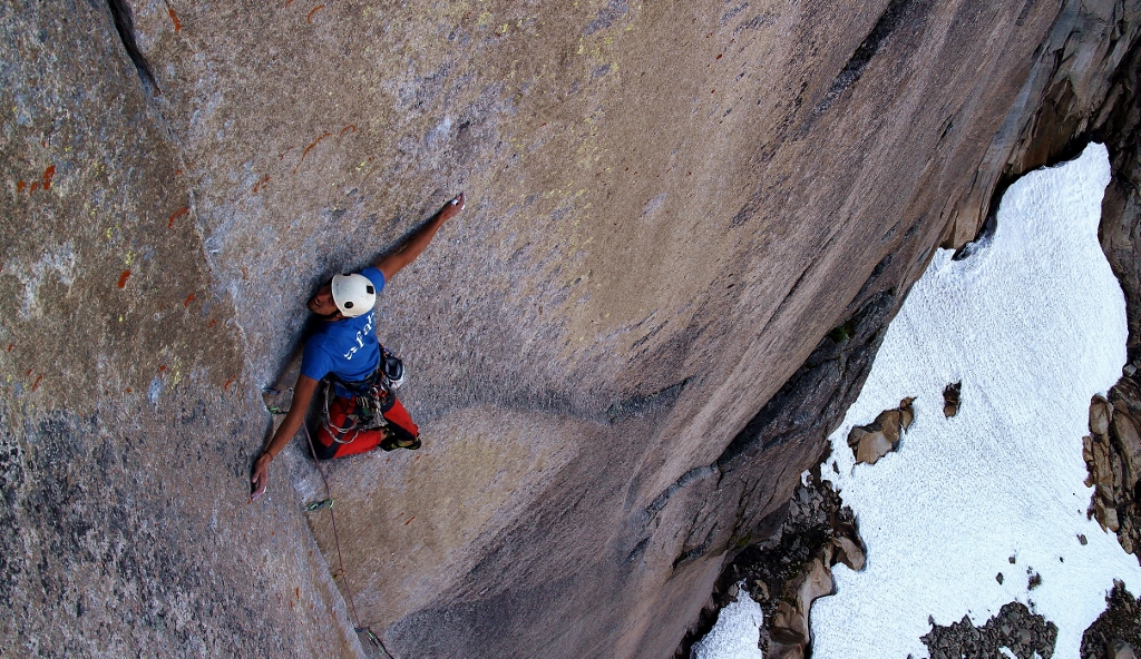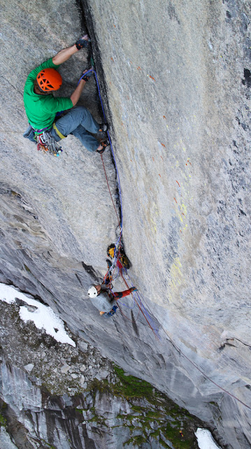 Dave MacLeod first laid eyes on Blamman’s north face four years ago during a Gore-Tex Experience Tour trip when he made the first free ascent of Bongo Bar, a 400m F8a. Ever since then MacLeod believed that a free ascent may be on albeit it would be hard. MacLeod, along with Cook, kicked-off their attempts in late July although they were immediately thwarted by wet weather and seepage on one of the harder pitches. Nevertheless, by aiding the harder pitches low down on the route they satisfied themselves that the route was possible free – assuming it would dry out in the time they had available.