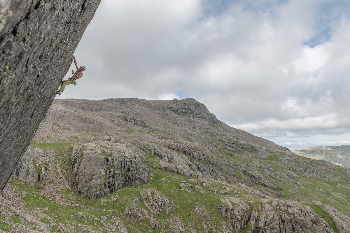 High on Return of the King, E9 6c, Scafell. Photo: Steve Ashworth/Lake District Images