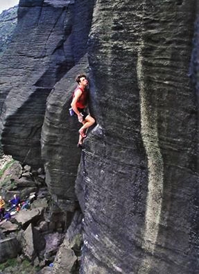 Born in Morley, West Yorkshire in 1967, Dave Pegg was an extremely active climber on the Pennine scene back in the 80/90's. As well as repeating many of the hard routes of the day he also climbed many new routes on both the grit and limestone including MaDMAn (E8) at Widdop, Heartbeat Cty (E8) at Rylestone, Three Blind Mice (E7) at Burbage and First and Last and Always (E7) on Esk Buttress in the Lakes.