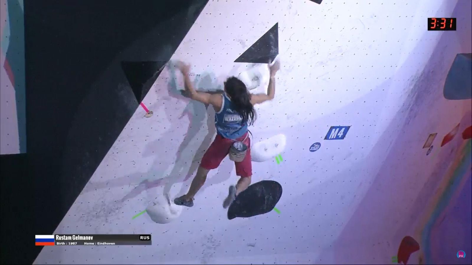 Rustam Gelmanov flashing M4 to win the comp. IFSC vid grab