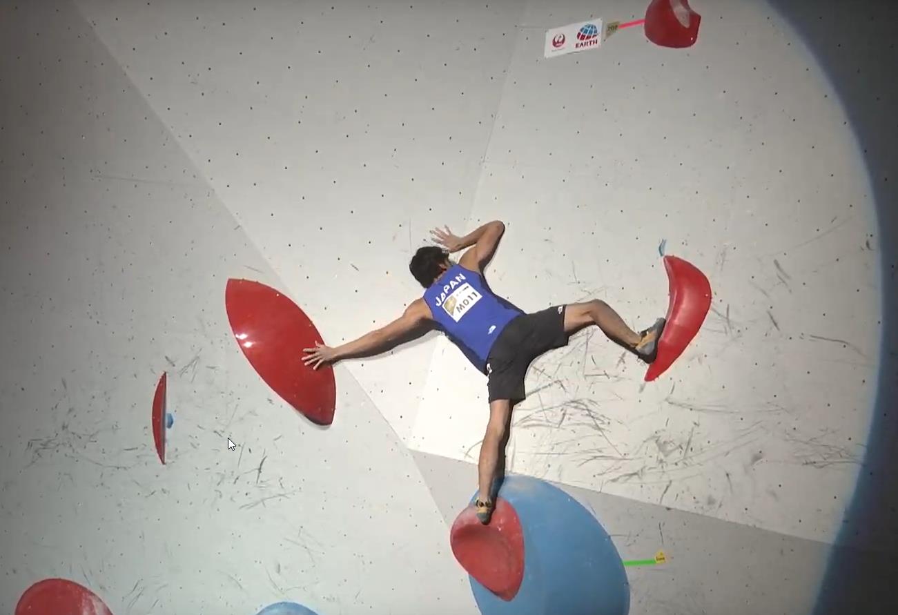 Tomoa Narasaki flashing M1 to establish an early lead in the Bouldering element