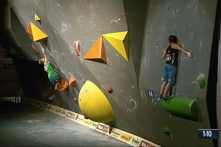 Semi-final winners, Schubert and Wurm, battling with M4 and F4 respectively. Screen shot from live stream IFSC