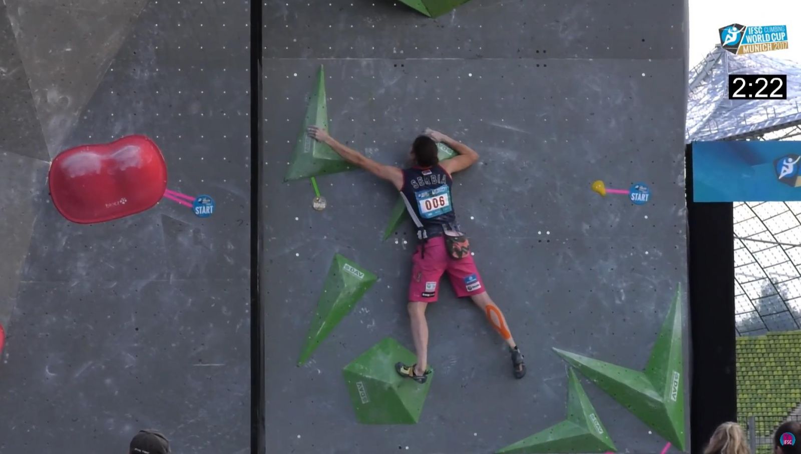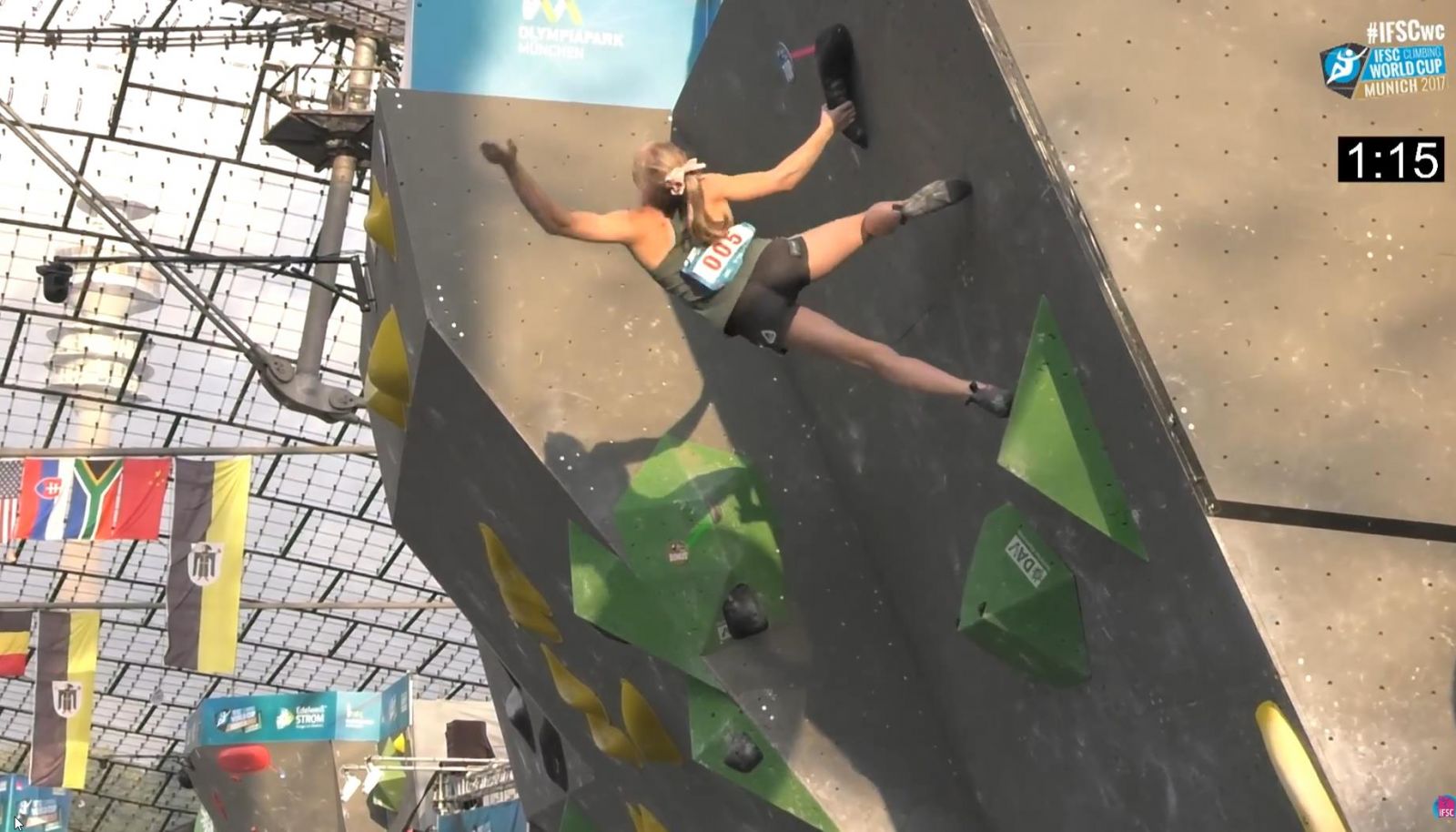 An enormous field of competitors, nearly 300 strong, gathered in Munich for the seventh and final event of the 2017 IFSC World Cup bouldering season over the weekend. Team GB also fielded one of their biggest teams ever – a dozen athletes in total. The event was also the final leg of the European Climbing Championship following the Lead and Speed Championships which were held in Campitello di Fassa, Italy earlier in the summer.