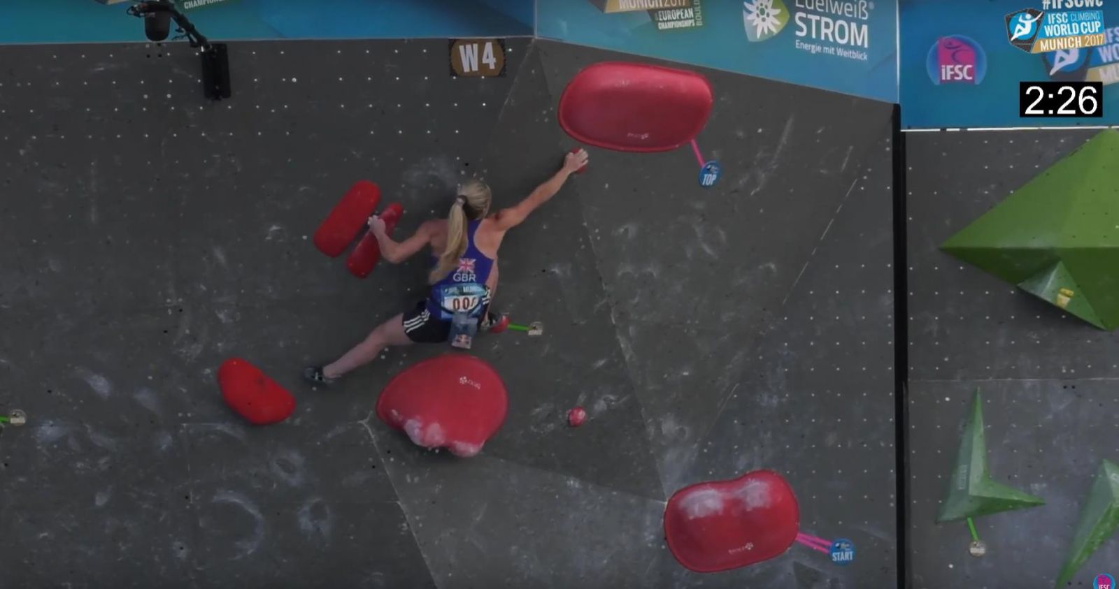 Shauna Coxsey flashing W4 to take second place at Munich