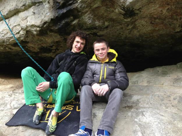 Adam Ondra and Jim Pope beneath Raven Tor earlier in the year as part of Lyon Outdoor's event.