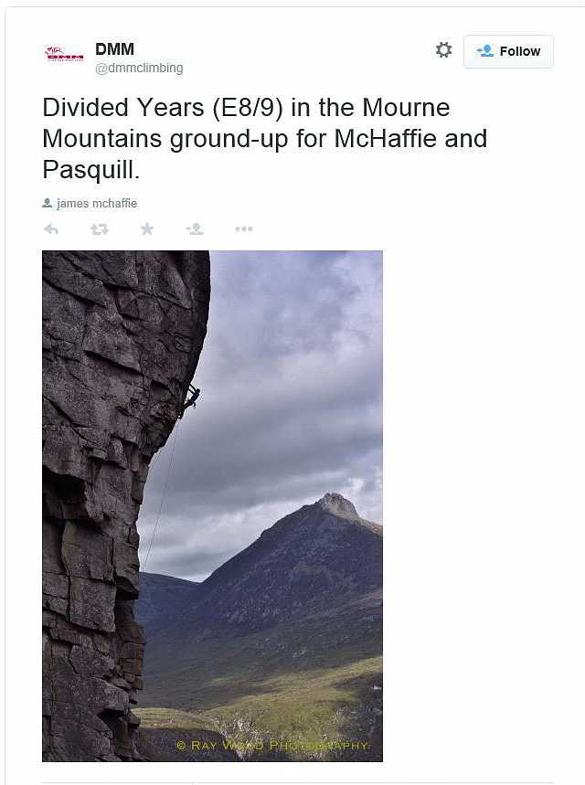 News is emerging that James ‘Caff’ McHaffie and Ryan Pasquill have both repeated Divided Years (E8/9) in the Mourne Mountains, Northern Ireland ground-up.