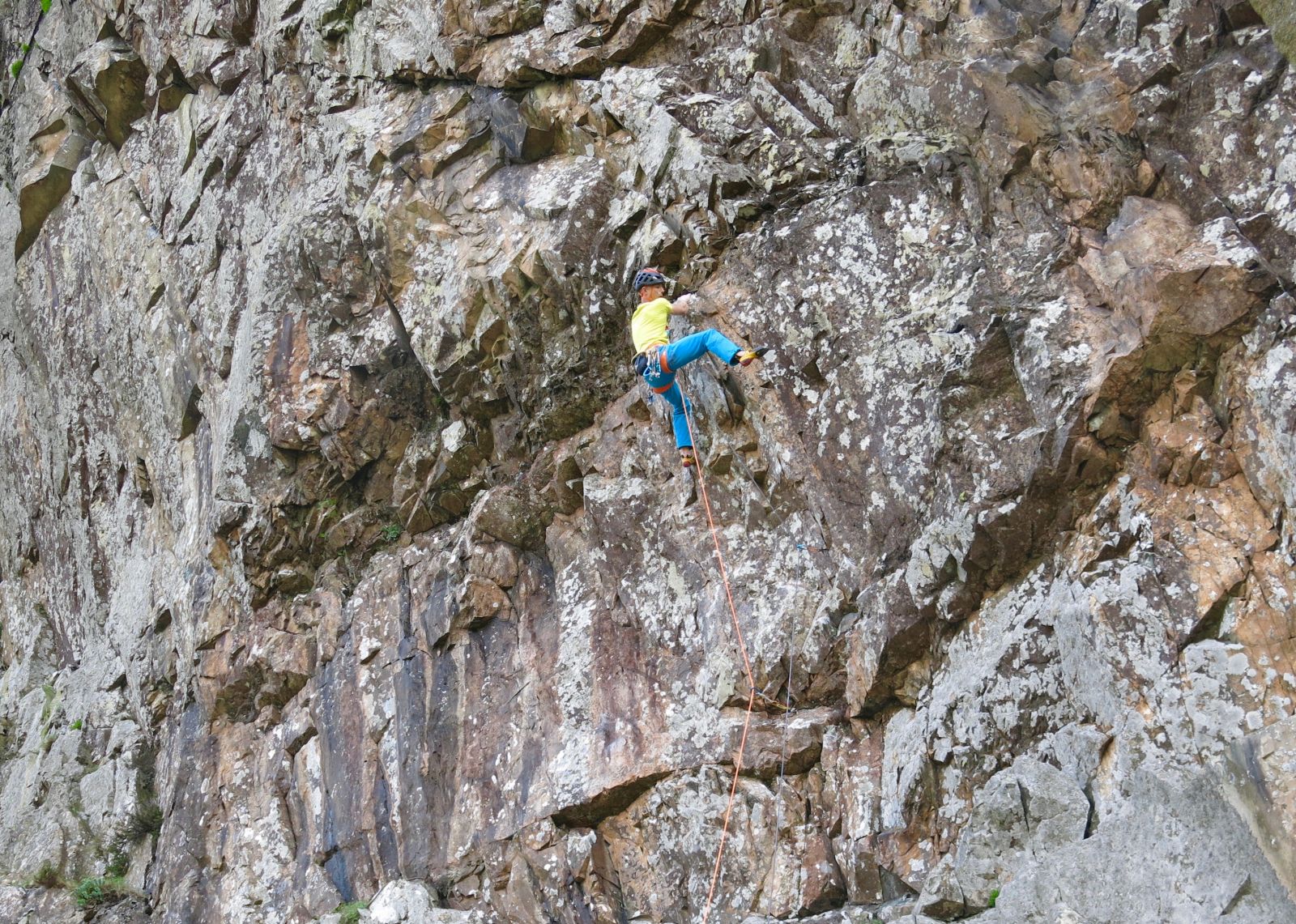 Neil Gresham on the lower crucial wall of Fearless (E9).