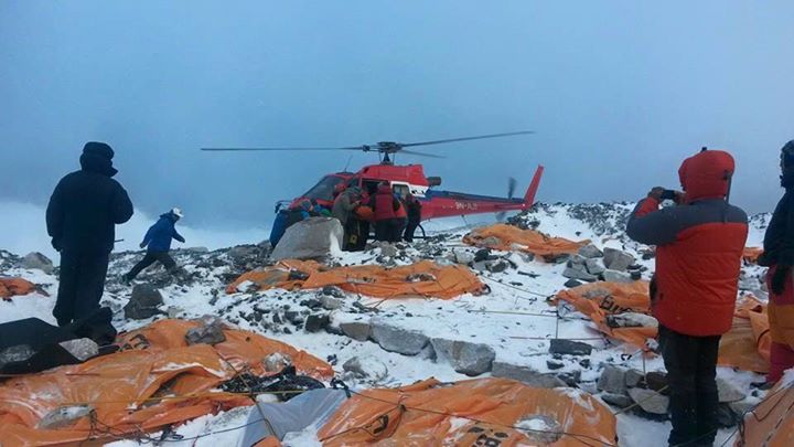 The situation higher up the mountain appears to be that a large number of climbers – thought to be up to 100 in total - are cut-off in the higher camps (Camps 1 and 2). Posts this morning are of further avalanches at and around these camps and hence concern is now how to get these climbers off the mountain given that the access route through the Khumbu Icefall which connects base camp with the higher camps was destroyed by the avalanche. Although the initial intention was to heli-evacuate injured climbers only, it is understood from posting (@Northman PK) that climbing equipment (ropes and belay equipment) has been dropped by helicopter at Camp 1 on the South Col route – presumably to assist with the downward re-establishment of a route through the Khumba Icefall to enable the mountain to be evacuated.