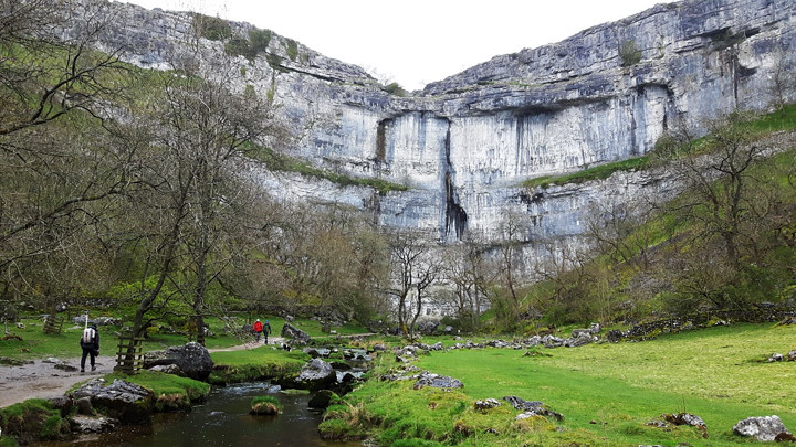 Malham Cove, awash until the mini heatwave earlier in April, providing a santuary for limestone devotees during the current spell of 'changeable' weather. Photo Keith Sharples
