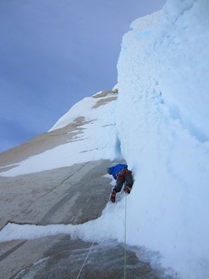 Subsequently, and over a two day period, 2nd-3rd of February, the pair did the first complete ascent of Cerro Terre’s north face establishing a line they have called Directa de la Mentira – literally, the Lie Direct. This is a reference to Cesare Maestri's disputed 1959 ascent of Cerro Torre via its northeast ridge. They followed the line of El Arca de Los Vientos, the 2005 route climbed by Rolando Garibotti, Alessandro Beltrami and Ermanno Salvaterra, to the Egger-Torre Col. Above the Col they veered away from the El Arca de Los Vientos by climbing direct up the north face, adding a total of six new pitches, before rejoining El Arca prior to the summit. These six pitches weren’t said to be especially difficult but they were climbed in a constant bombardment of ice shards from the decomposing summit ice mushrooms. The mixed climbing was said to follow splitter cracks on good rock. The headwall where these pitches are located is said to be covered in rime ice for much of the year in a typical year and under these conditions would be very difficult to climb.