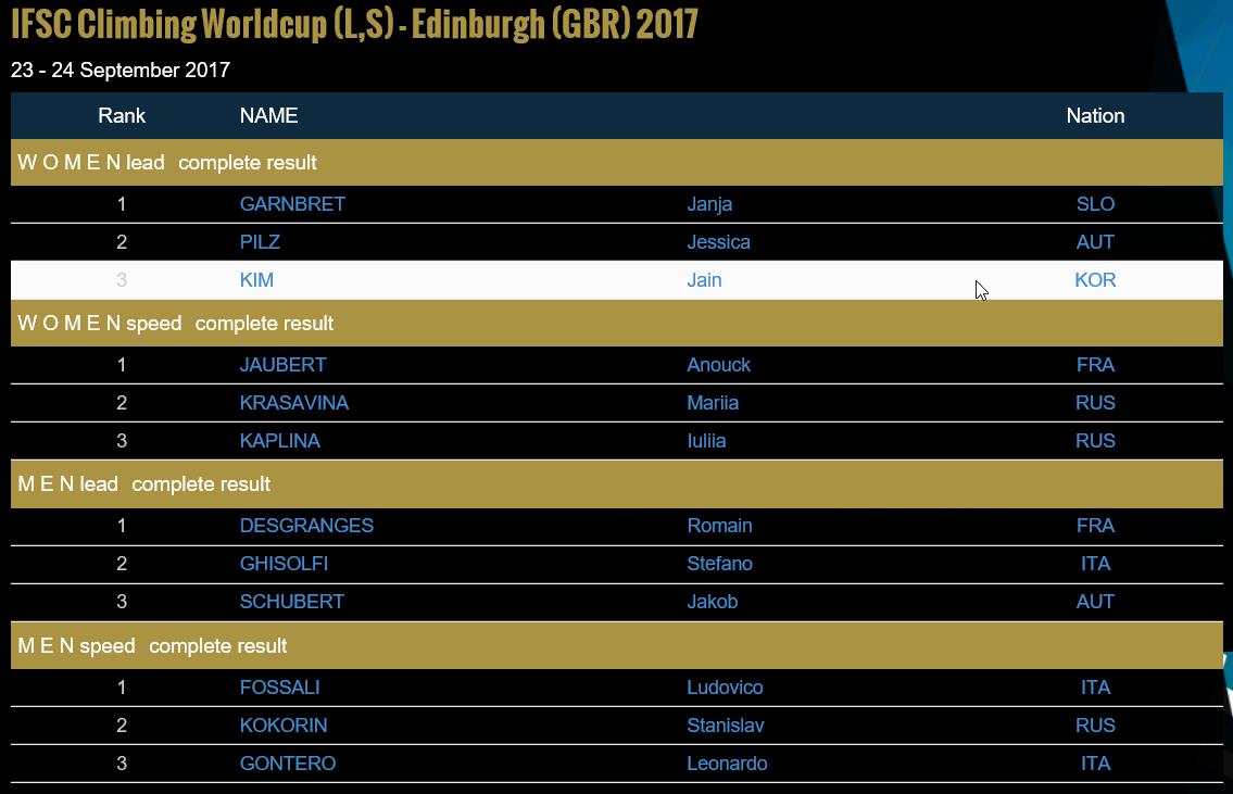 For the full result in the lead, speed and paraclimbing go to the IFSC website here.