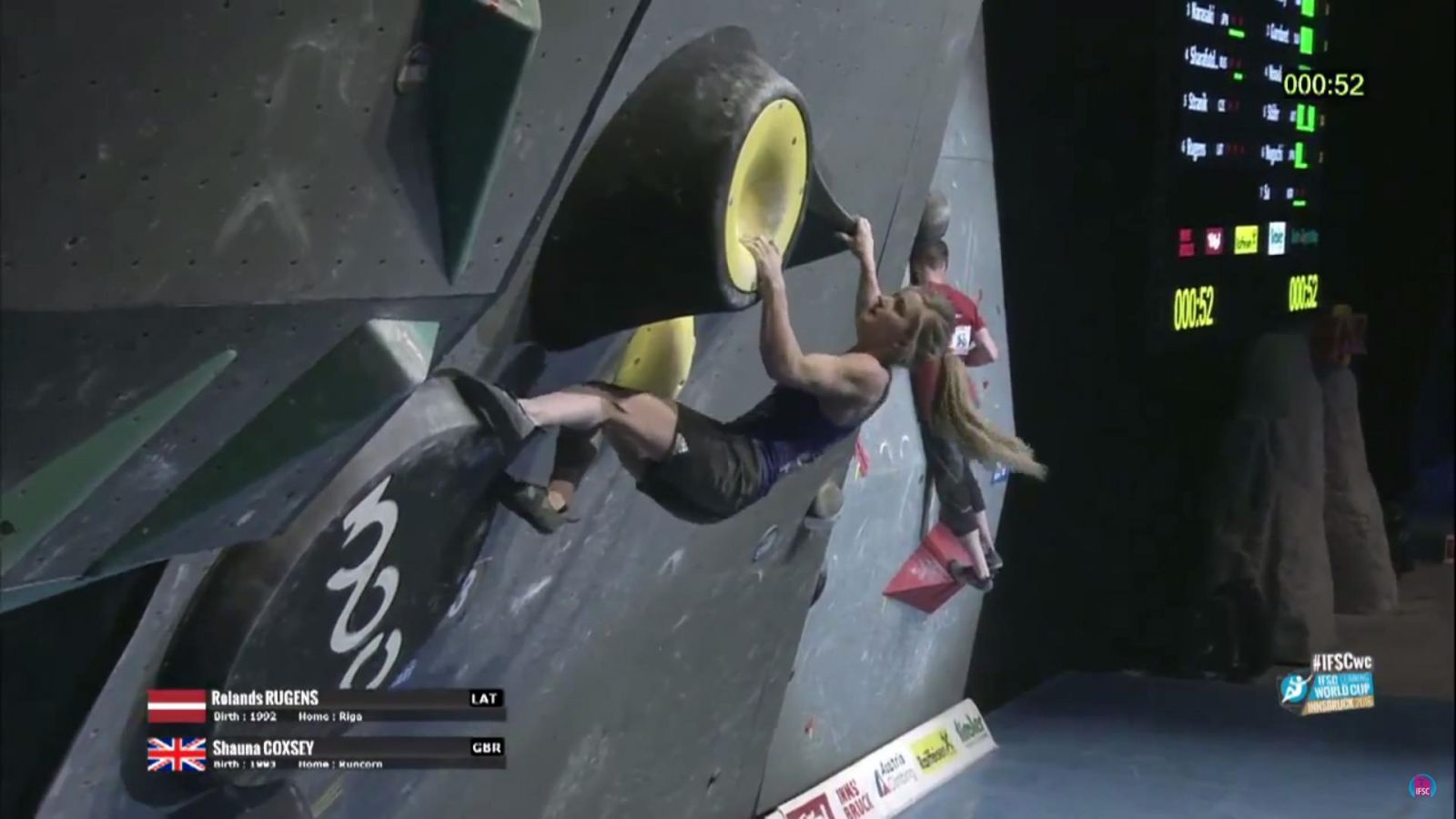 Shauna Coxsey on W3. Video grab from IFSC feed