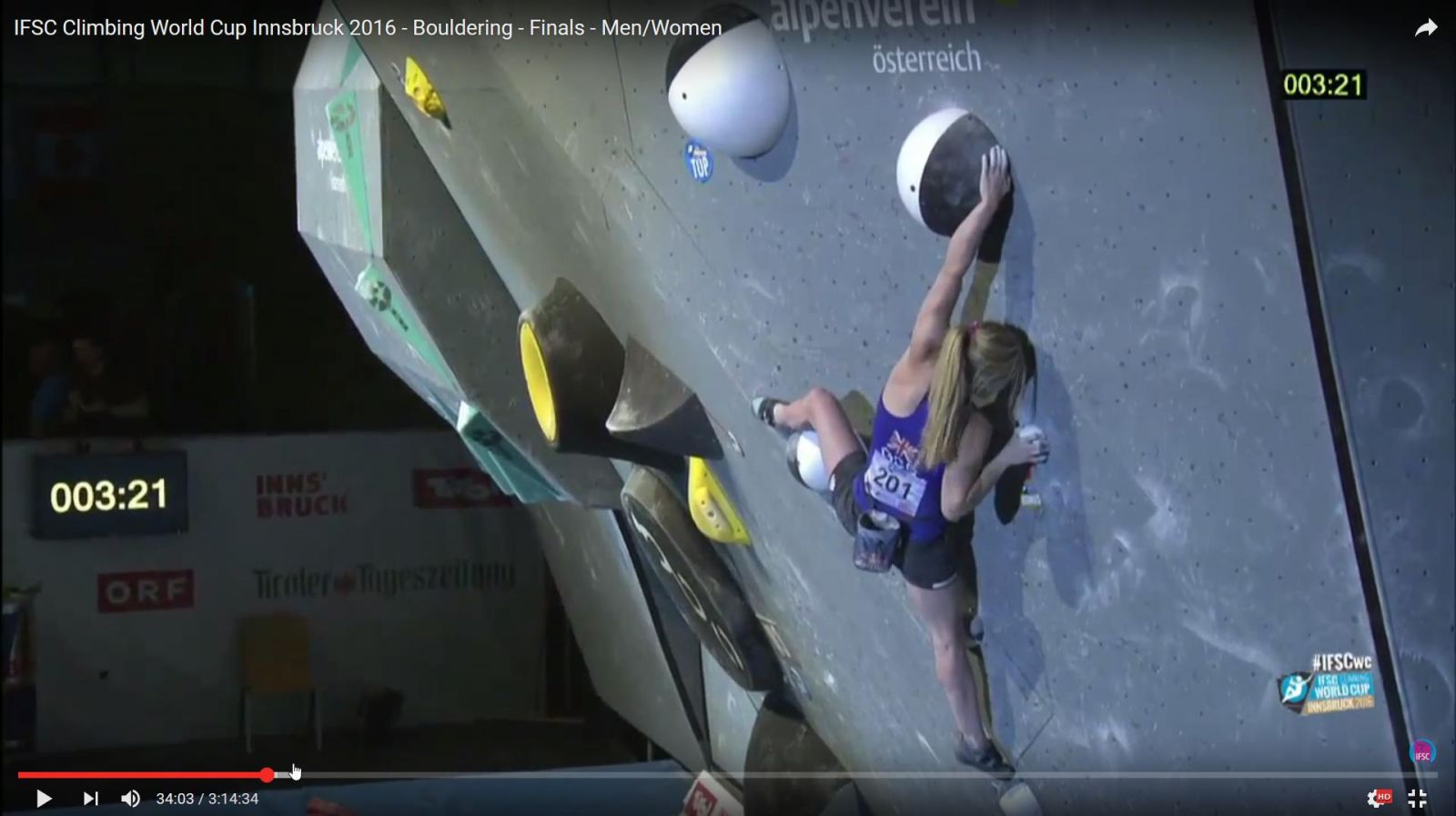 Shauna Coxsey flashing W1. Video grab from IFSC feed