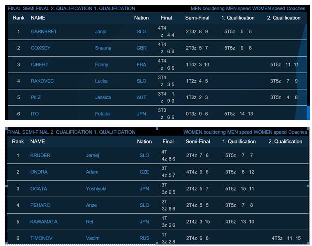 For the full results, including those for the speed event, click through here to go to the IFSC website.