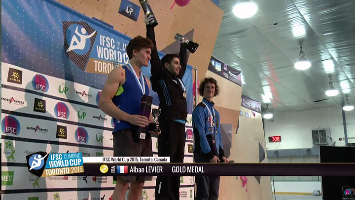 Men’s Podium at Toronto. Video grab from IFSC live feed
