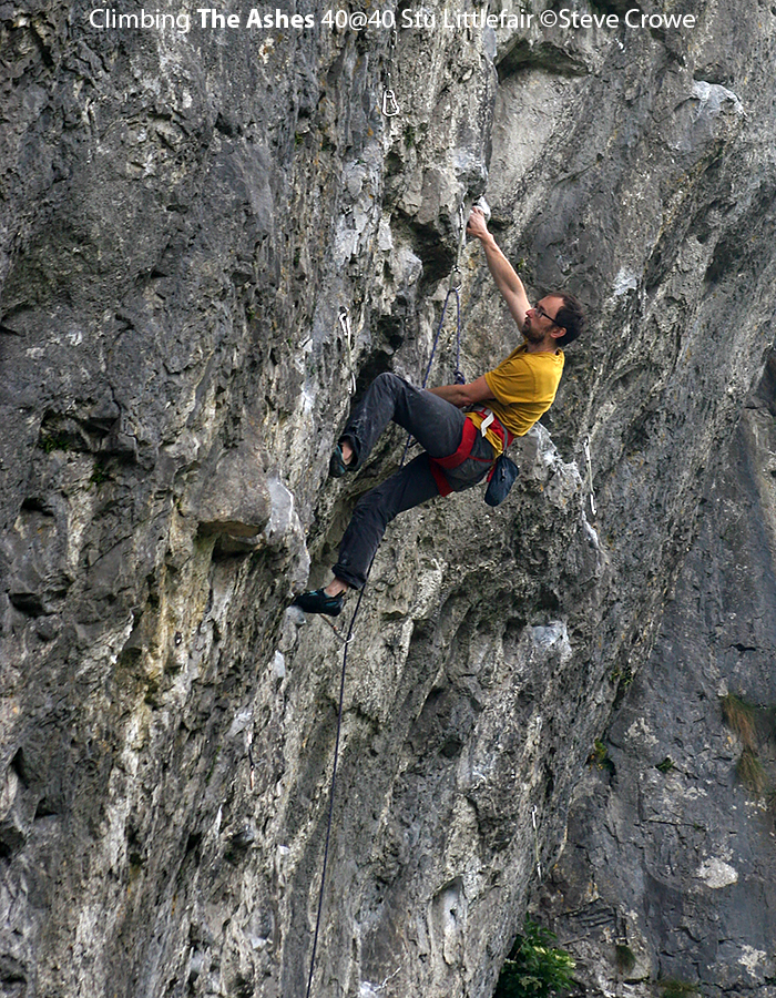 The year after sending Rainshadow (F9a), Stu Littlefair – the UK’s favourite climbing astrophysicist and arch rival of kneebar-king Alex Barrows - has just celebrating his 40th birthday by doing 40 routes at Malham and Kilnsey.